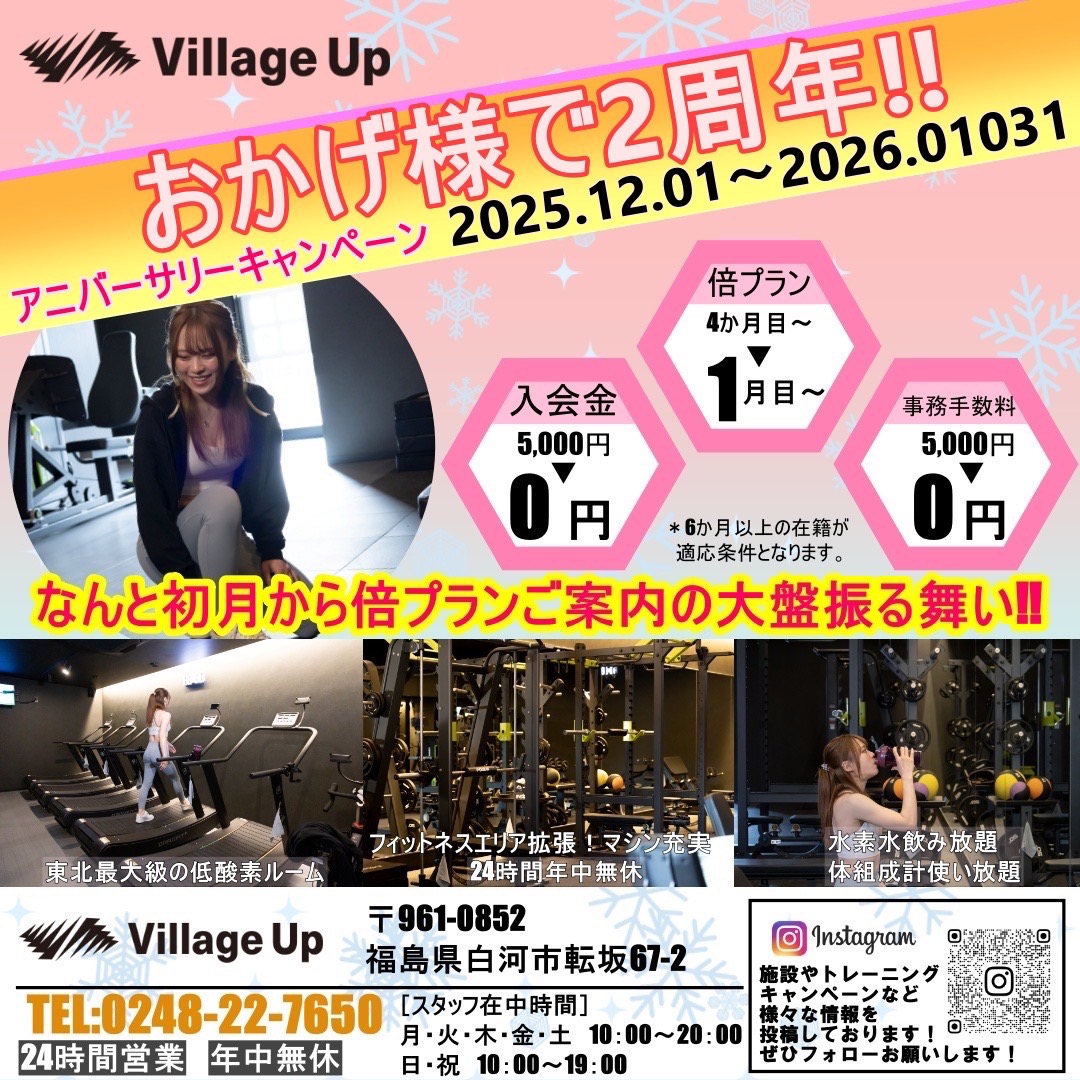 福島県白河市の村上スポーツは長年の実績と信頼で、地域のスポーツ用品店として皆様に愛されてきました。この度、新たに「Village UP」トレーニングジムがオープンします。24時間自分のスタイルでお楽しみください。